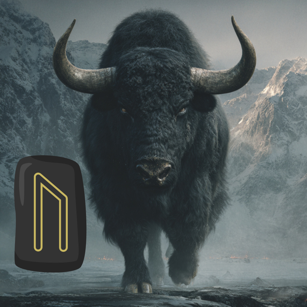 Традиционное значение руны — тур. Первобытный дикий бык, который когда-то бродил по всей Европе. Его больше нет — вымер. Но энергия, которую он воплощал, никуда не делась. Она в земле, в теле, в том слое жизни, который существовал до людей и будет существовать после.